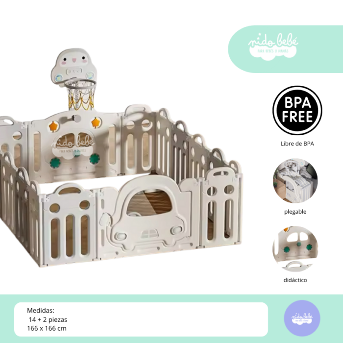 Nido Bebé presenta este magnífico corralito infantil plegable modelo carrito, para garantizar la diversión de los más pequeños de la casa.