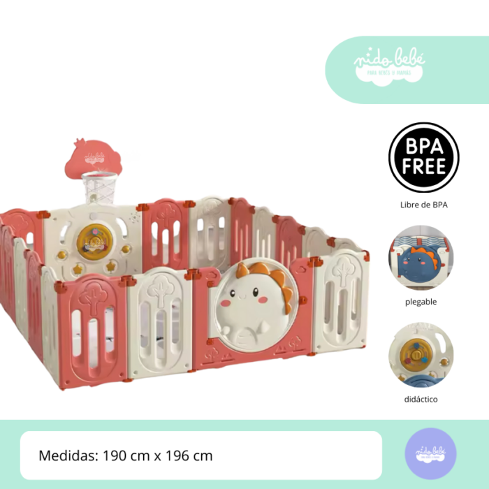 Nido Bebé presenta este magnífico corralito infantil plegable modelo Dino, para garantizar la diversión de los más pequeños de la casa.