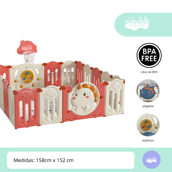 Nido Bebé presenta este magnífico corralito infantil plegable modelo Dino, para garantizar la diversión de los más pequeños de la casa.